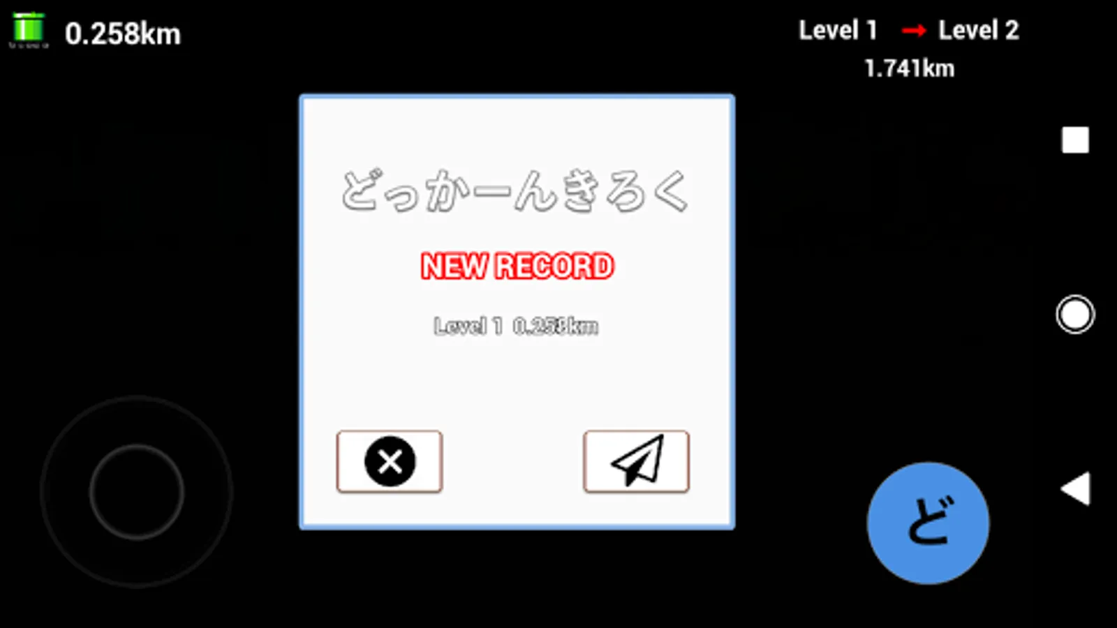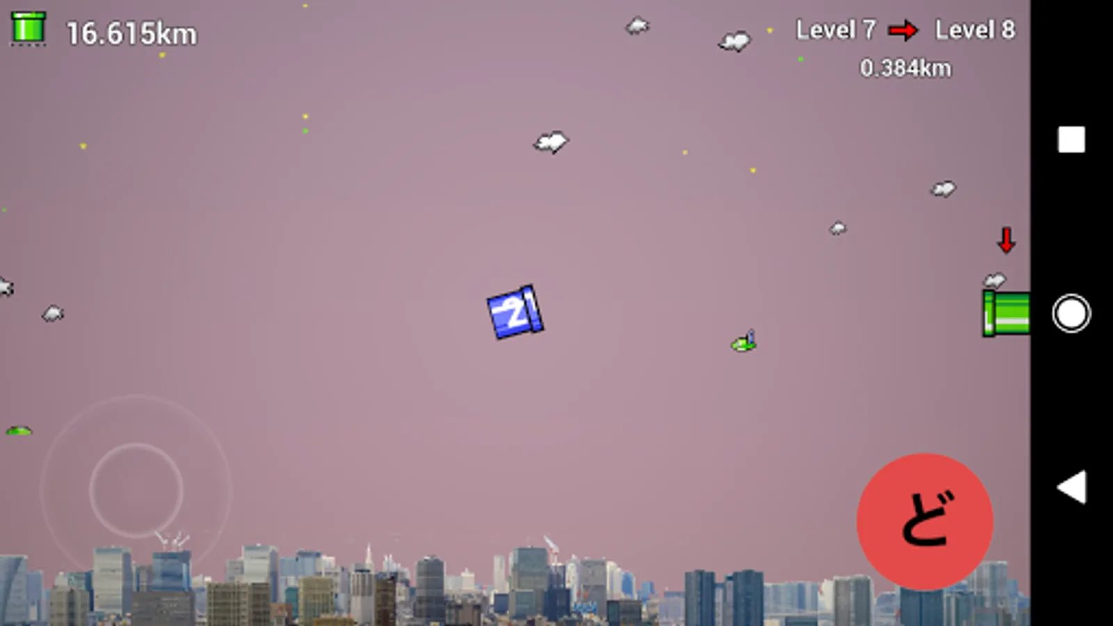 タイミングよくボタンを押して、ドカンを渡り距離を競うアクションゲームです。