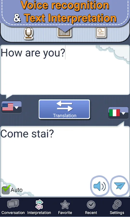 Interpretation available immediately through voice recognition