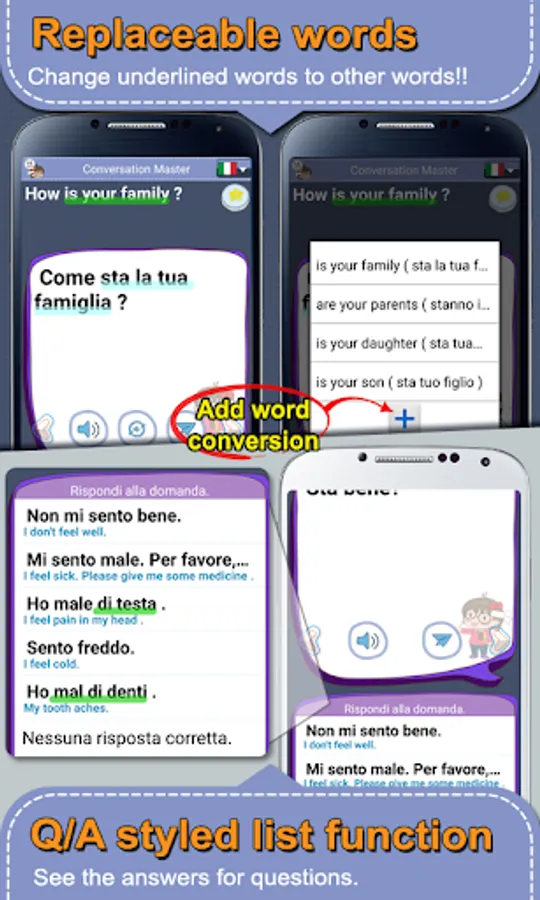 Conversation Master makes you learn as you see and listen to the expressions.