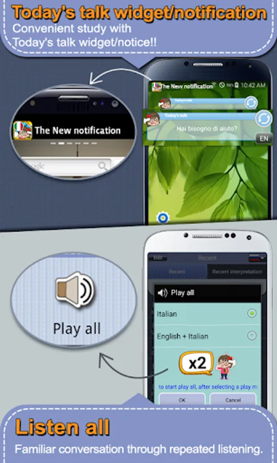 Today’s Talk notification shows you each expression per a day for you to learn and listen to those expressions one by one.