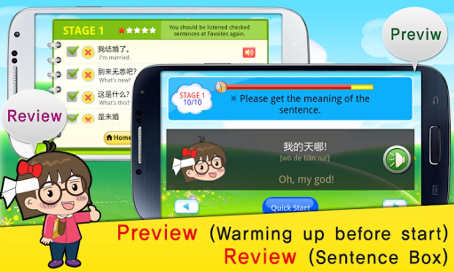 - You can read and listen to your cleared sentences again whenever you want at Favorites.