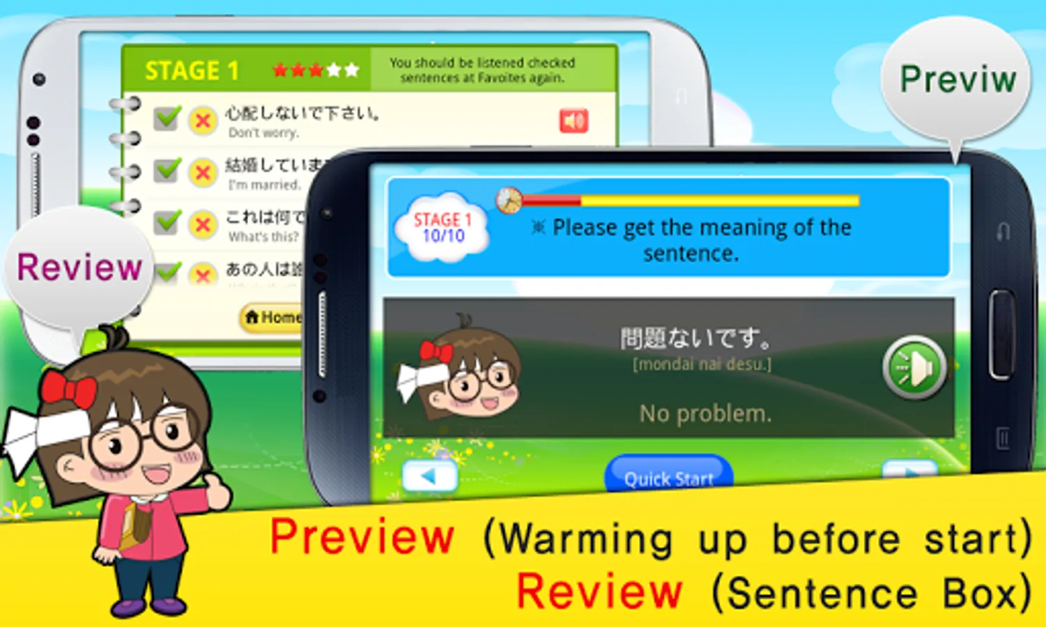- You can read and listen to your cleared sentences again whenever you want at Favorites.