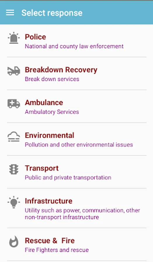 (b) to help you find a wide array of first responders closest to you in case of a security emergency - Law enforcement, private security, doctors/clinicians, ambulances, beak-downs/towing, mechanics and road side assistance, fire and rescue, chief /ward representatives,