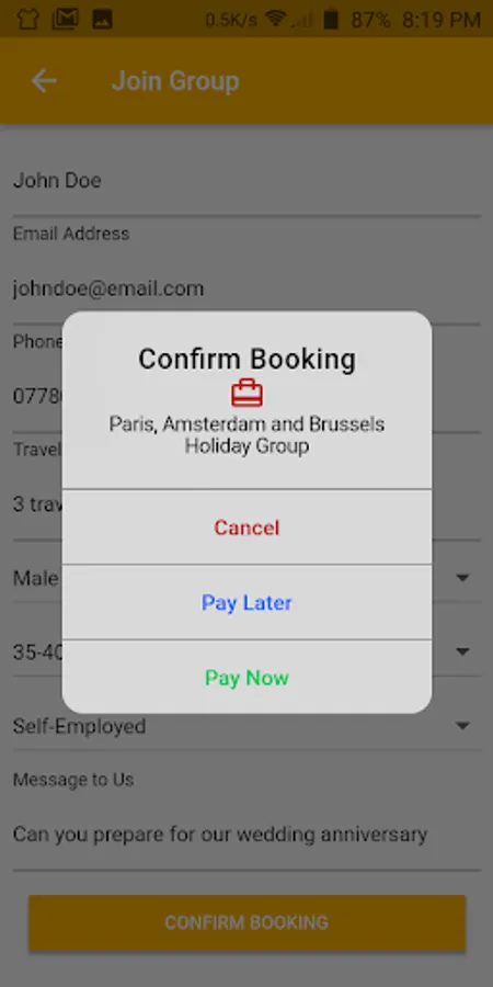 3. If there are no major special request, then proceed to the second option: "Start Saving" to start saving for your Holiday.
