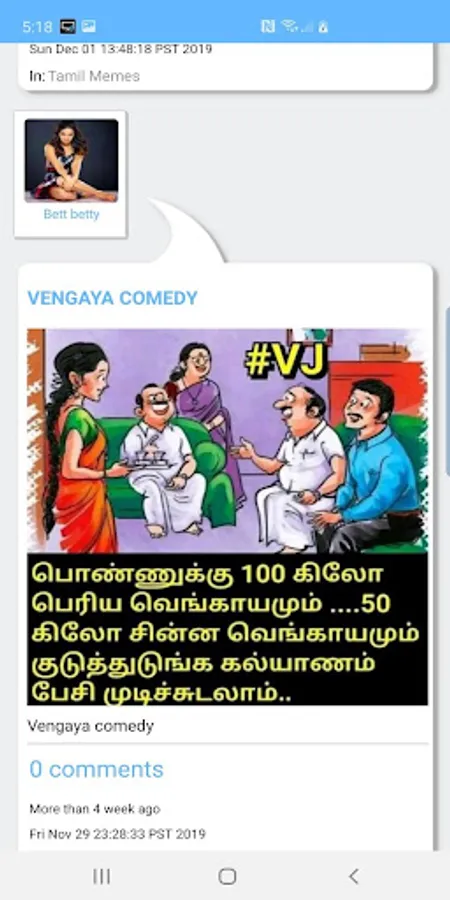 You can read jokes, memes in a variety of languages such as Tamil, English, Hindi etc.