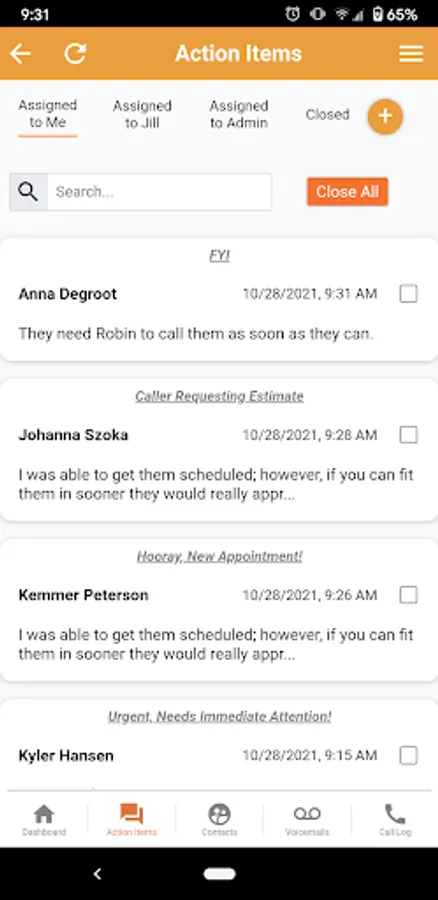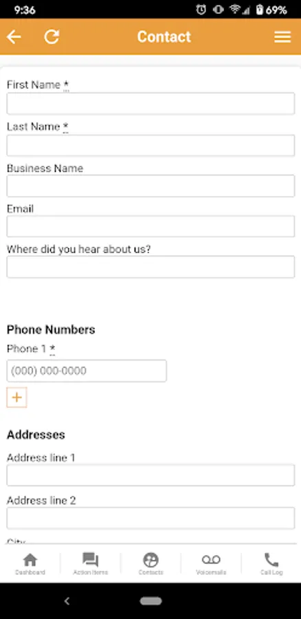 Check your contact list containing detailed contact information, lead info, and any action items associated with a particular contact with simple, organized viewing.