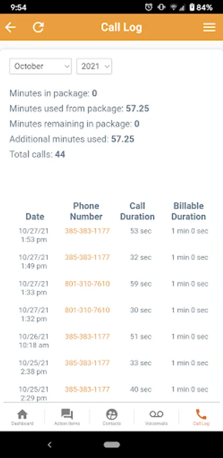 View a full, organized list of all your calls including call timestamps, durations, and billable times. Also check your minutes usage quickly and easily with our live minutes reporting so you know where you're at, at all times!