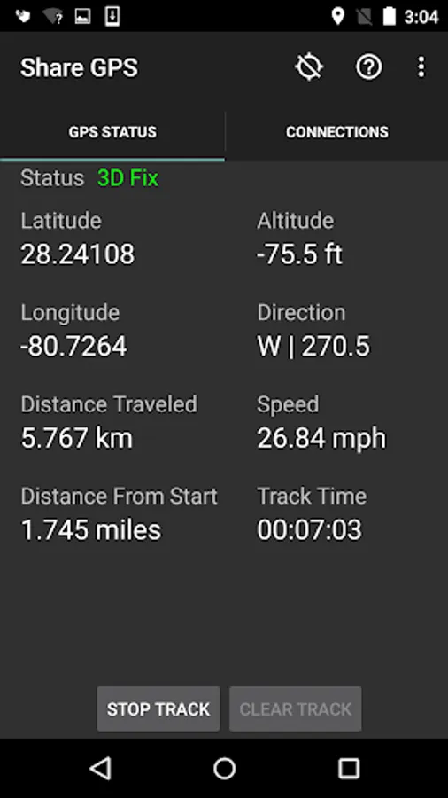 Share GPS also supports KMZ track files. Tracks can be started, stopped, and cleared by the user at any time. The application can also be setup to remember tracks between app runs and pick up where the user left off. Track connections can be created at any time to support the saving and sending of the track data.