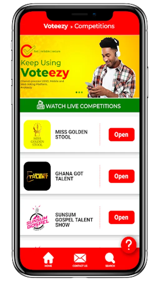 Voteezy is a multiplatform voting system that allows users to vote on USSD, the voteezy.com website, and mobile apps.