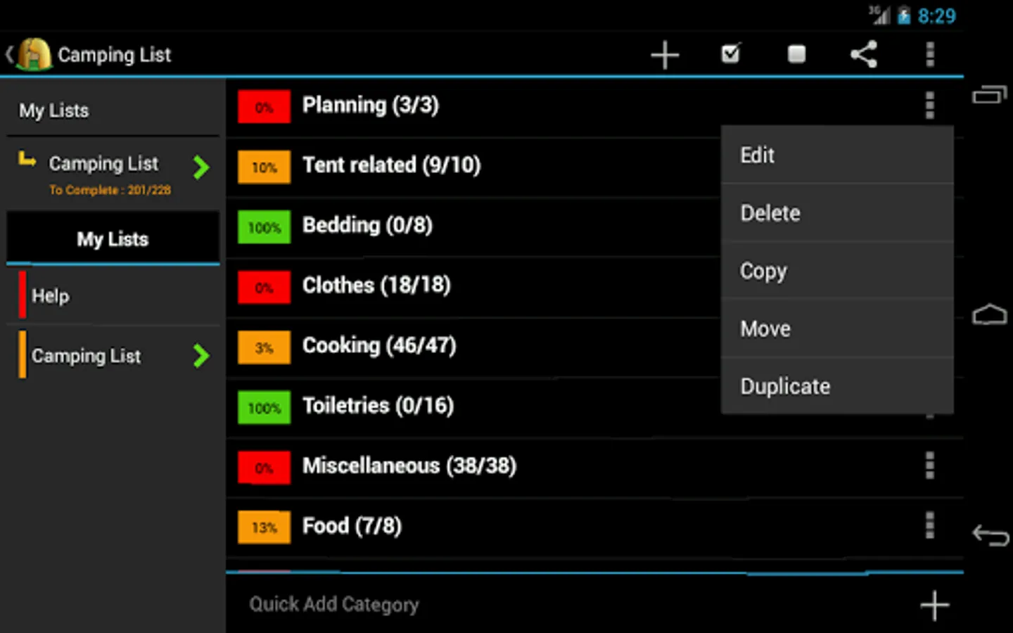 - Copy or Move between lists, categories and items. Quickly creates your own personal list in matter of minutes.