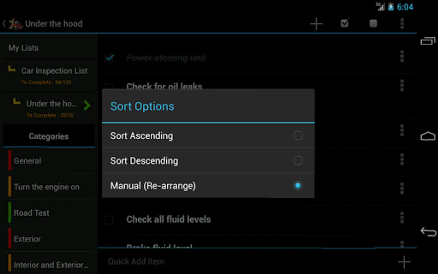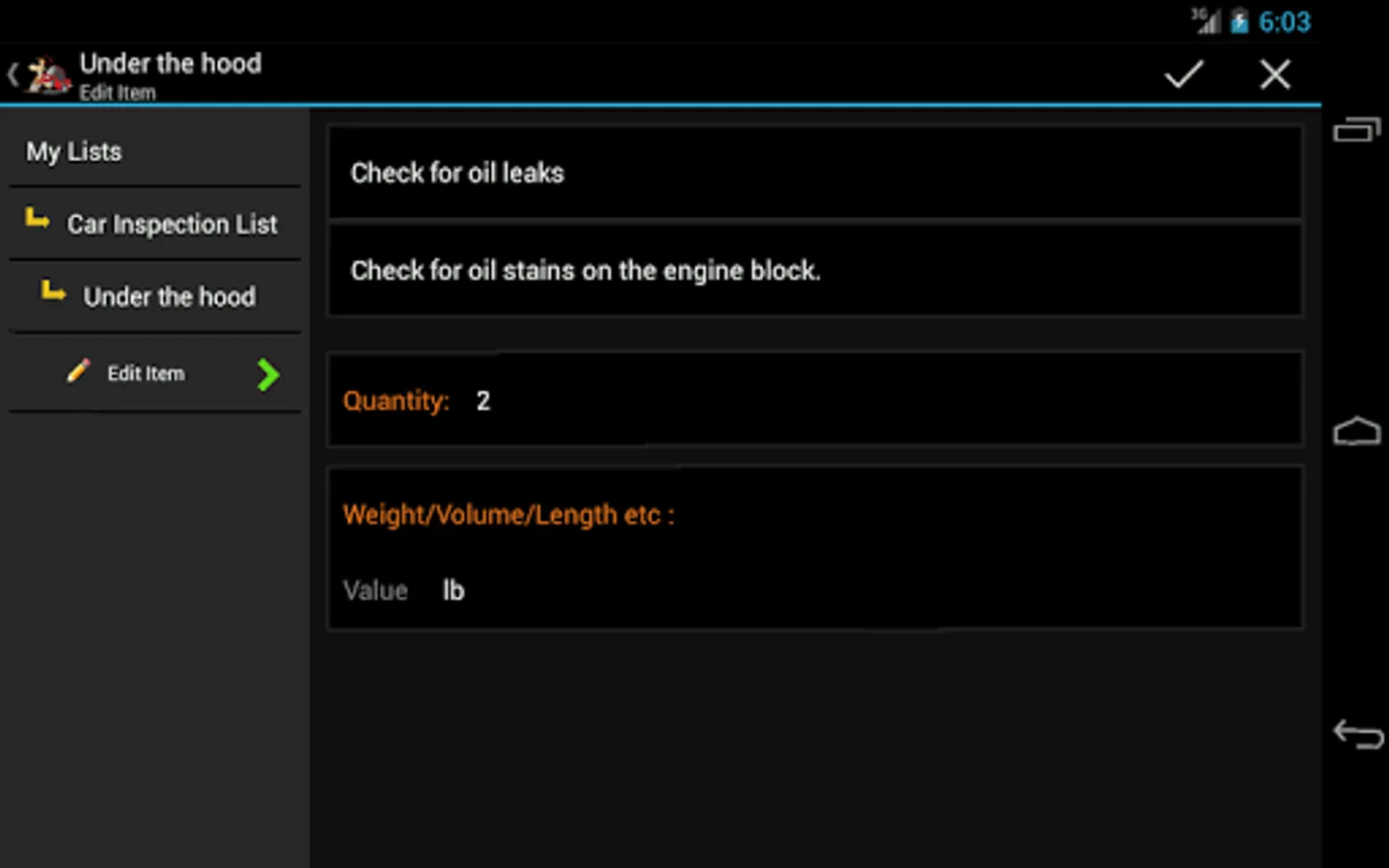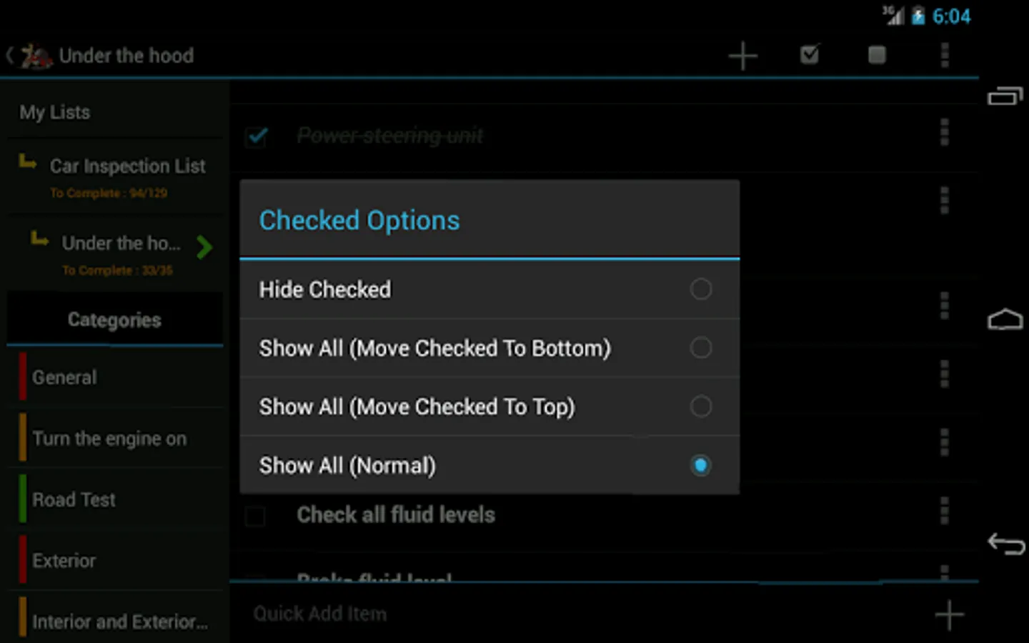 Are you looking to buy an used car ? Make sure you inspect the car thoroughly before you make the payment. This used Car / auto Inspection checklist comes pre-populated with over 125 inspection items that you can check before making the purchase. Avoid expensive mistakes. Use this checklist and be stress free. The inspection list is configurable and easy to use with thumb friendly check/ uncheck options.