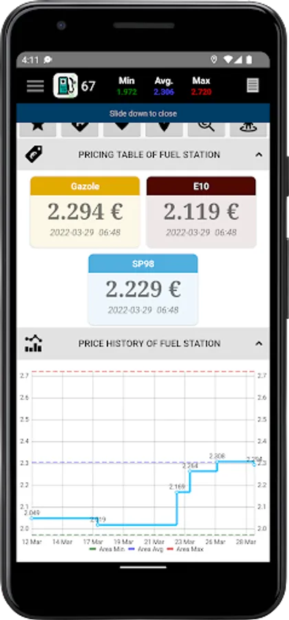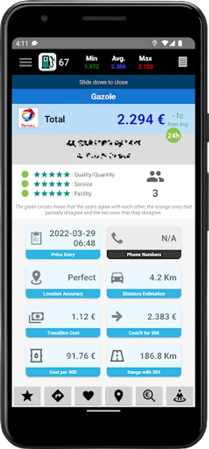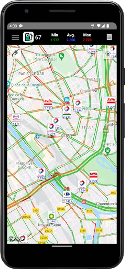 The application receives price data several times per day from the Prix Des Carburants (an official French state service). As a result the fuel station owners are the only responsible for the data accuracy displayed by the application.