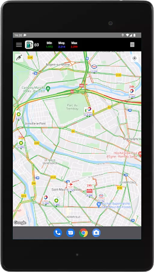 With fuelFR for Android you can see on map the fuel stations and their prices for all France. The application receives data either according to the geo-location of the device (uses the GPS signal of the device) or based on the location pointed out by the user on the map (with long press). You can also filter out the received data based on the desired brand, fuel type and price age. Fuel types supported are petrol (all types), diesel (all types) and liquid gas (LPG).