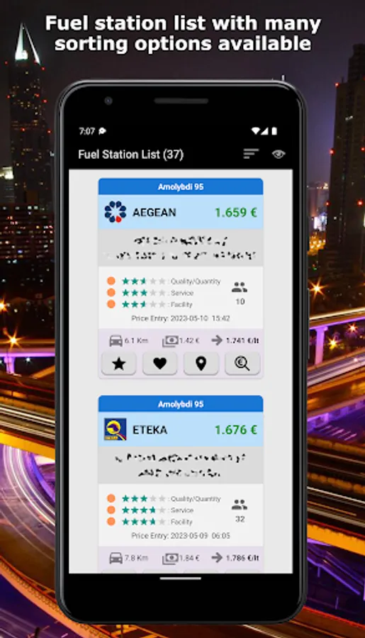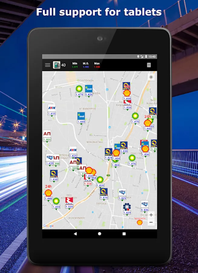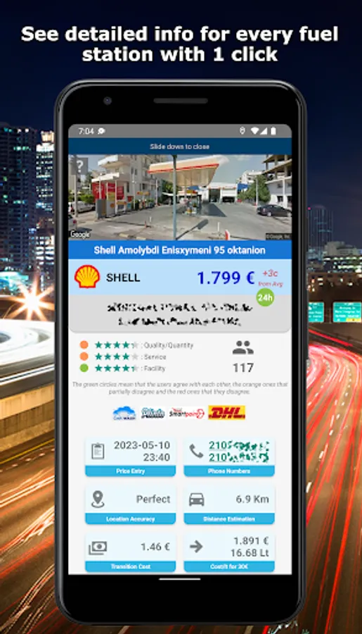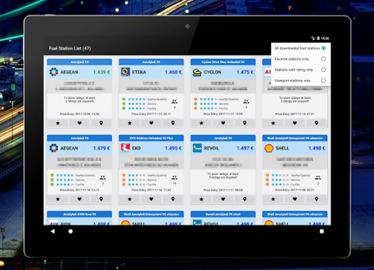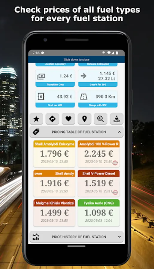 The application is THE ONLY ONE with manually verified fuel station positions (for >93% of the fuel stations). This allows services like Google Street View pictures for the stations, estimation of distance to a station, navigation guidance, etc. The application even provides a facility for the user to suggest the right station position in case of misplaced stations.