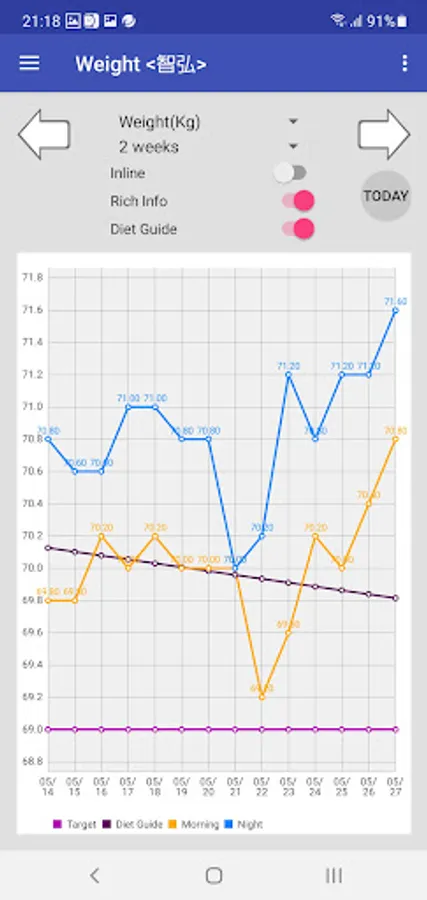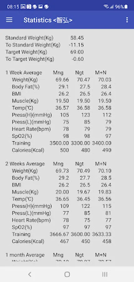 For statistical information, you can also get the average of standard weight, weight difference to the target weight, 1 week, 2 weeks, 1 month, 2 months, 3 months, 6 months.