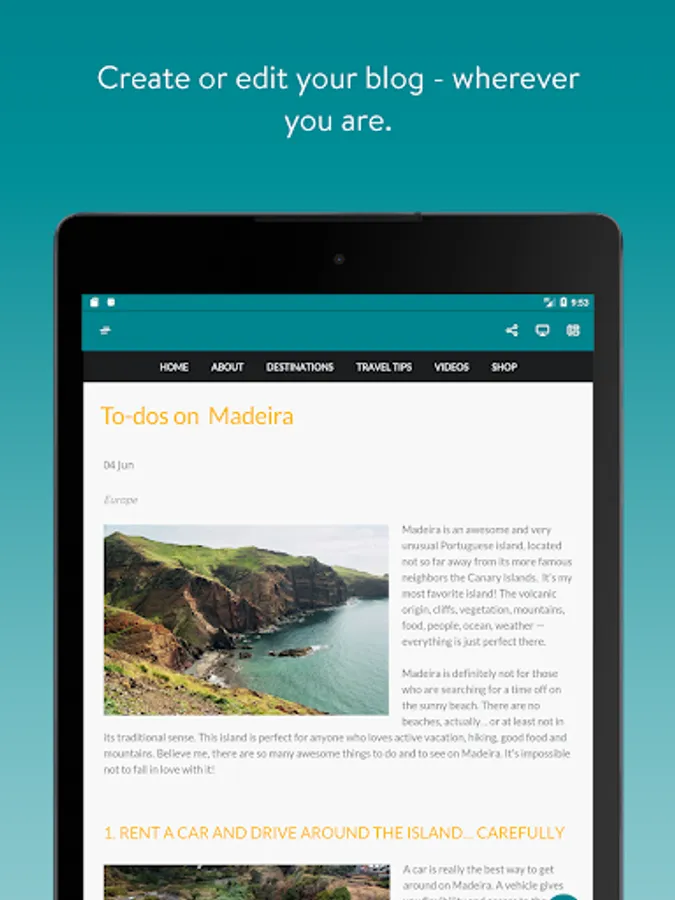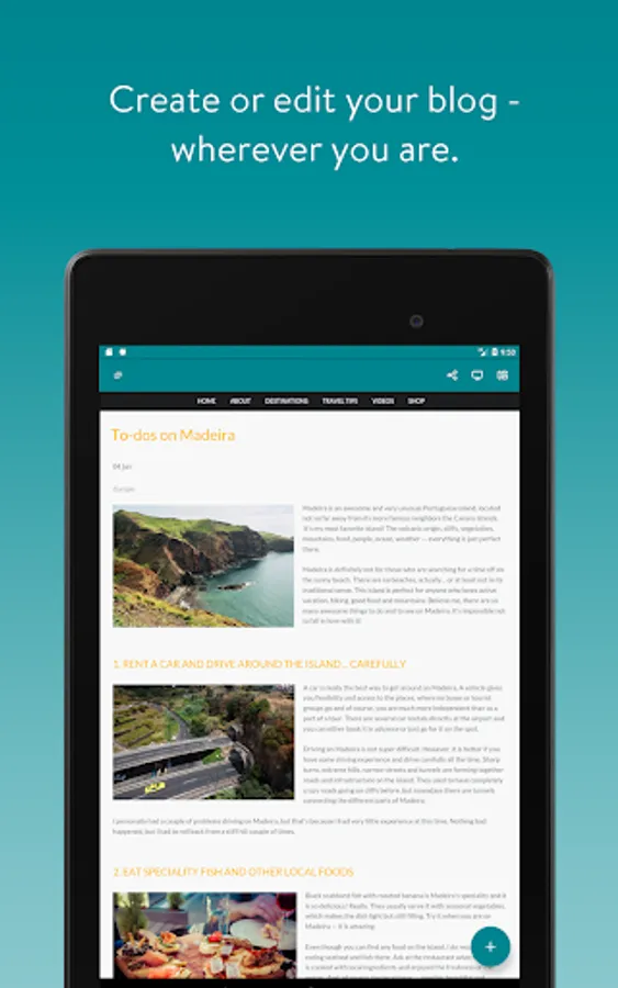 Write and publish blog posts by creating text, photos, or galleries on your mobile device or tablet. Add categories to your posts, choose which posts to display on different parts of your website, then share them.