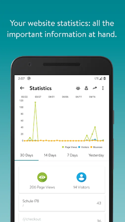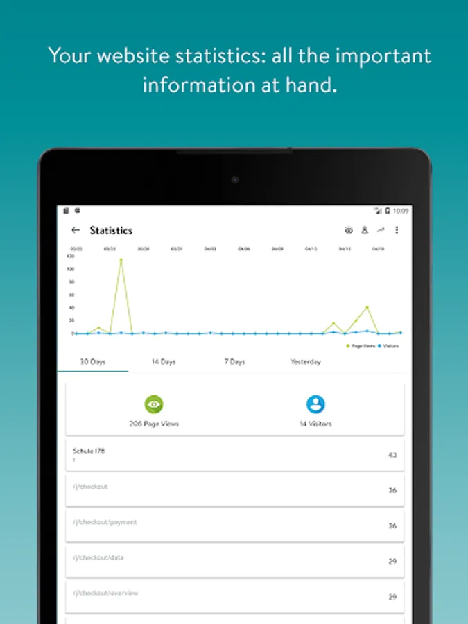 As a JimdoPro or JimdoBusiness customer, you can see the most important statistics for your website directly from your Android device—like visitors, page views, and more.