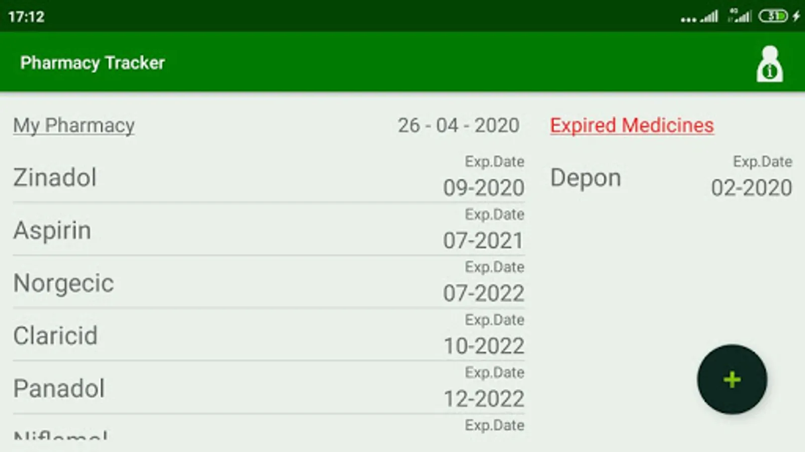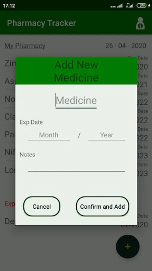 Pharmacy Trcaker allows the user to monitor and keep track of available medicines in home pharmacy.