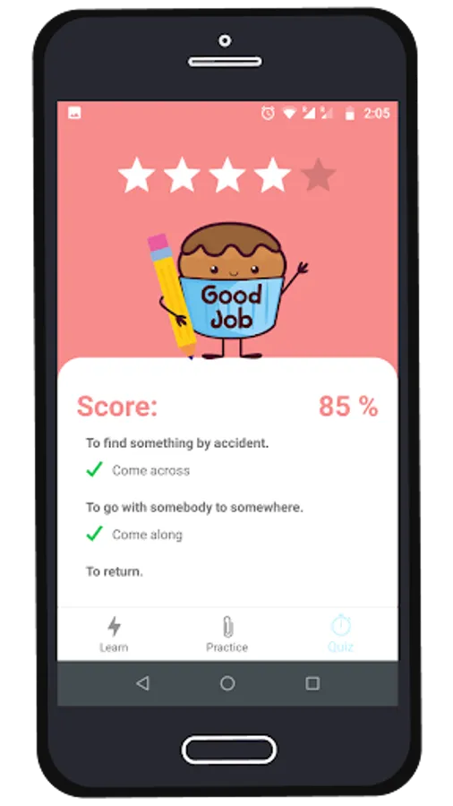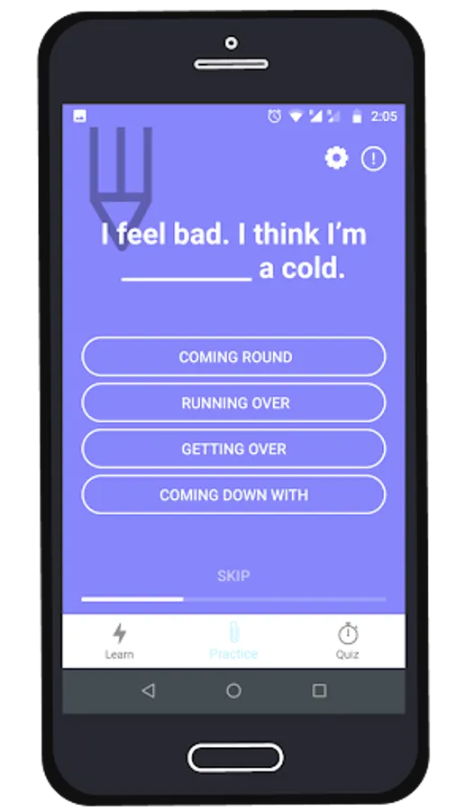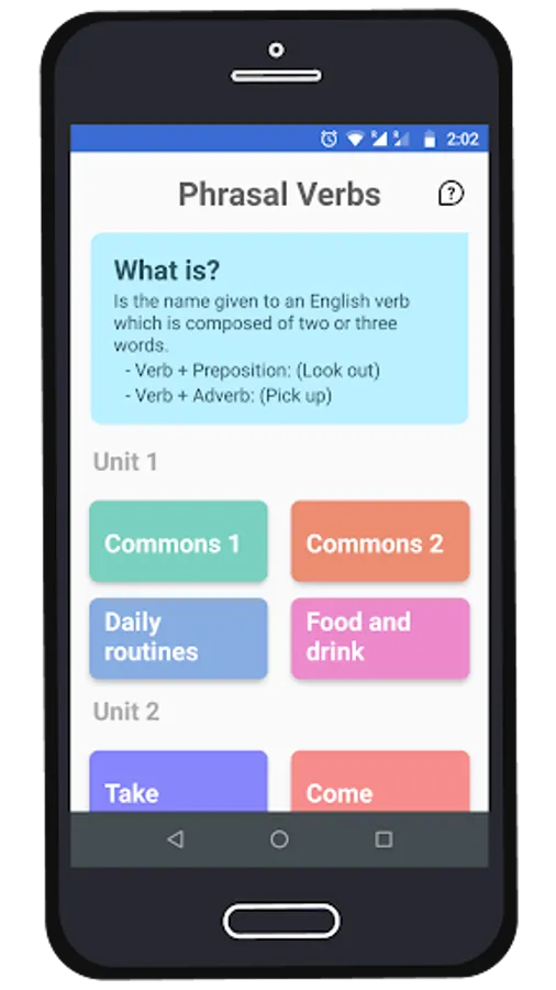 This application is an offline tool to study, practice and learn phrasal verbs in an easy way.