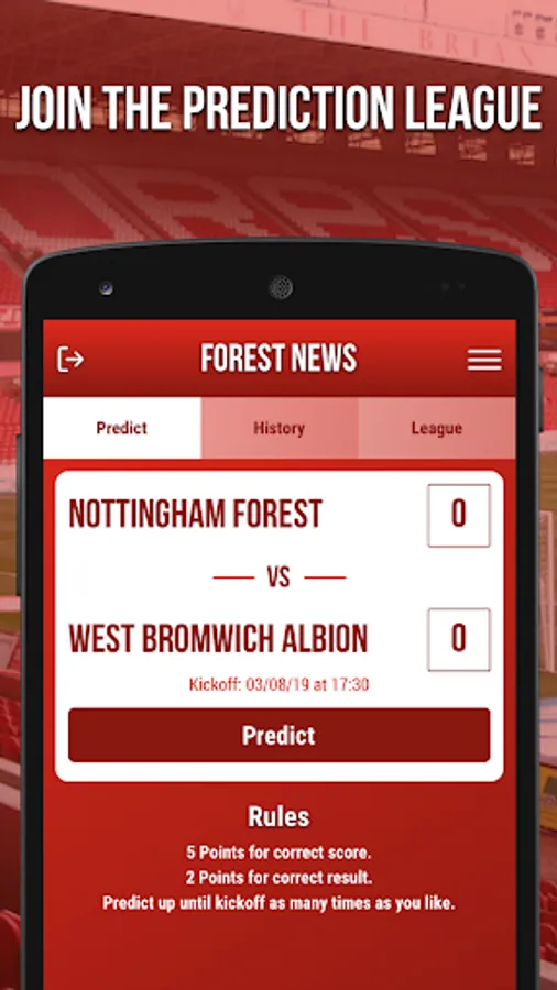 √ Join the prediction league and play the season long game! Compete against other Forest fans by predicting results, earning points and proving you are the biggest fan.