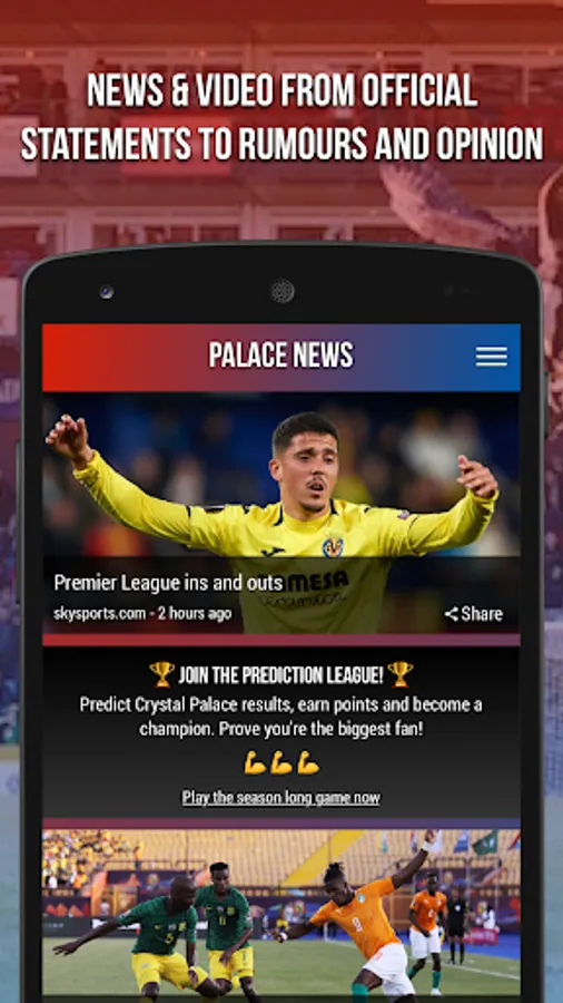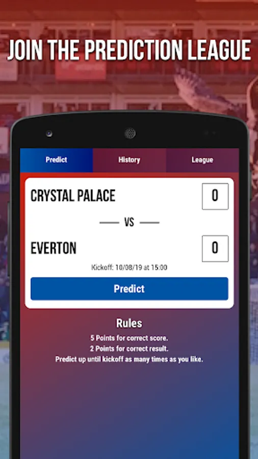 √ Join the prediction league and play the season long game! Compete against other Palace fans by predicting results, earning points and proving you are the biggest fan.