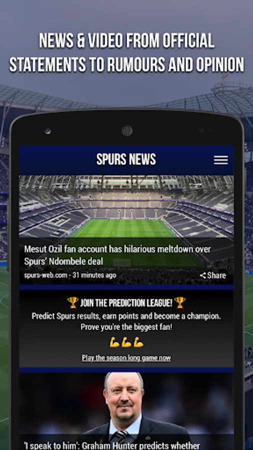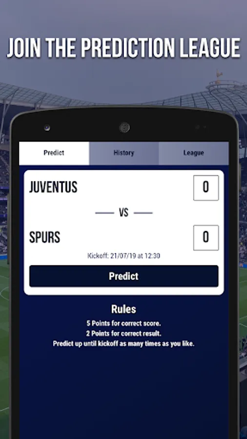 √ Join the prediction league and play the season long game! Compete against other Spurs fans by predicting results, earning points and proving you are the biggest fan.