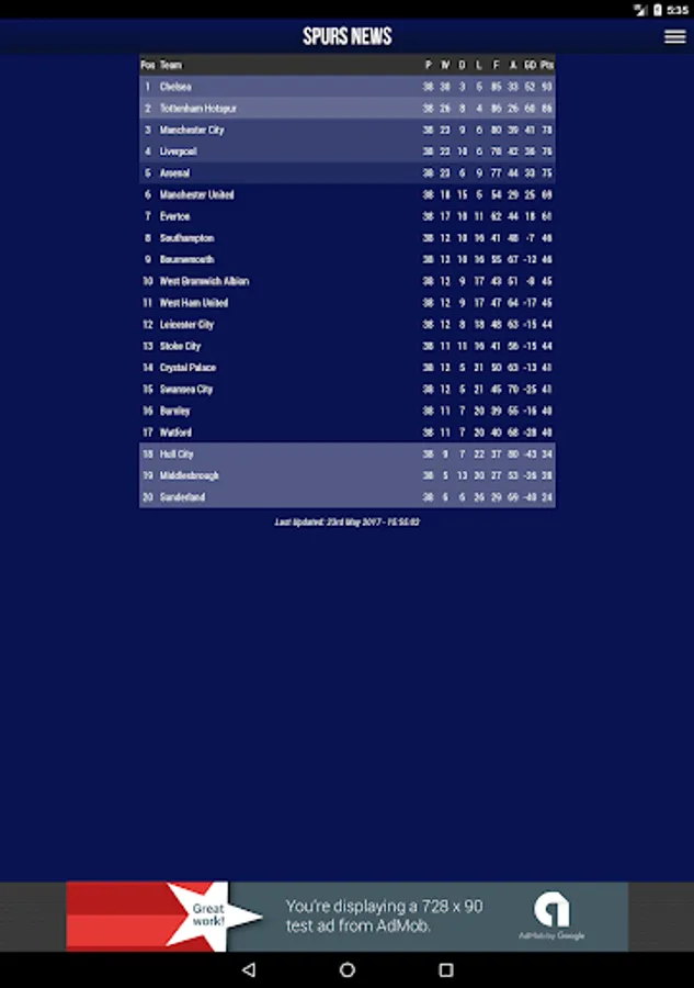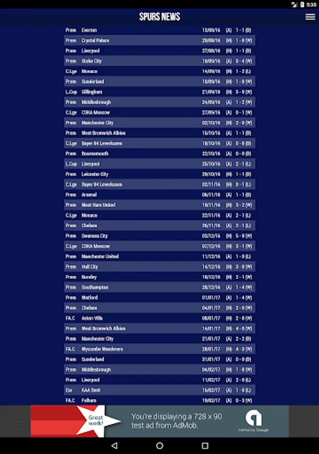 This app is 100% unofficial and is in no way affiliated with Tottenham Football Club. This is a fan made app, made for fellow fans and is not to be confused with any official app that THFC have, or wish to produce.