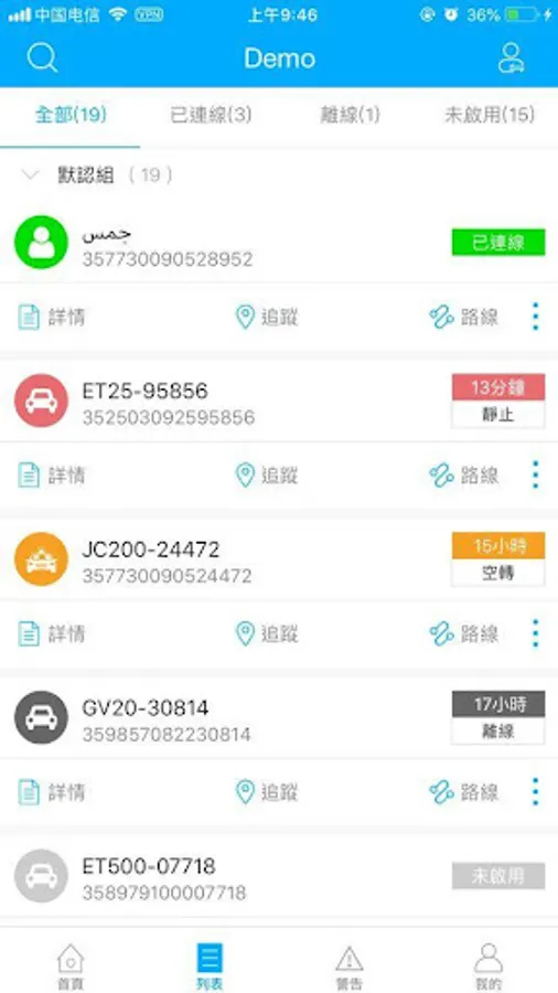 8. Notification message-Display the real-time status of the vehicle in the account by vehicle status, such as: switch engine, idle, disconnected or no GPS signal, etc.
