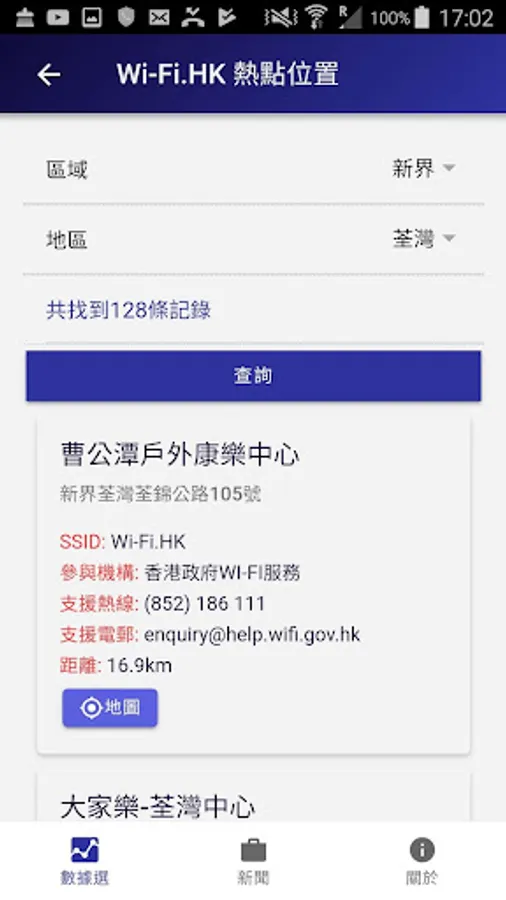 The information is provided by "Data Link". It is integrated with the Mobile App by the WebApi interface. Provides the geographical location and updated information of the government and public institutions in Hong Kong.
