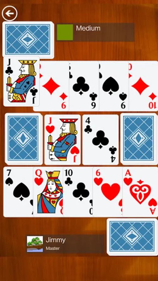 -Each player is dealt five cards to form a hand, and each player is dealt 15 cards face down to form a draw pile. If you are playing with jokers, you use them as wild cards and give each draw pile 16 cards. A stack of five cards, placed face down on each side between the players, serves as a replacement pile. Finally, two cards are placed face down in the center between the replacement piles.