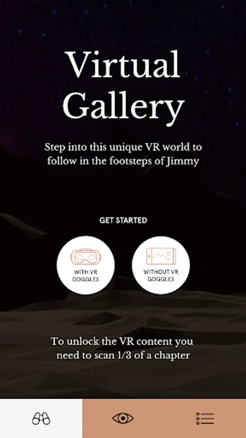 The book Homage to Humanity has an extra feature: a Virtual Reality gallery. Scanning one third of a chapter will reward you with access to the Virtual Gallery where you can watch extraordinary 360 film. VR Goggles are provided with the book, but it is also possible to watch without the VR Goggles.