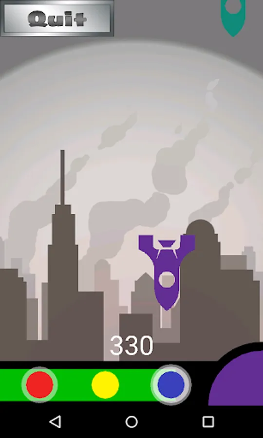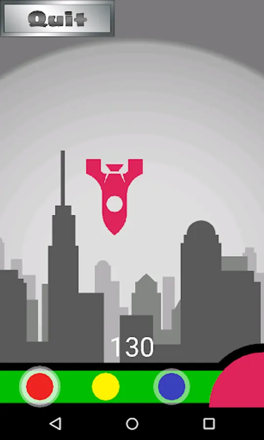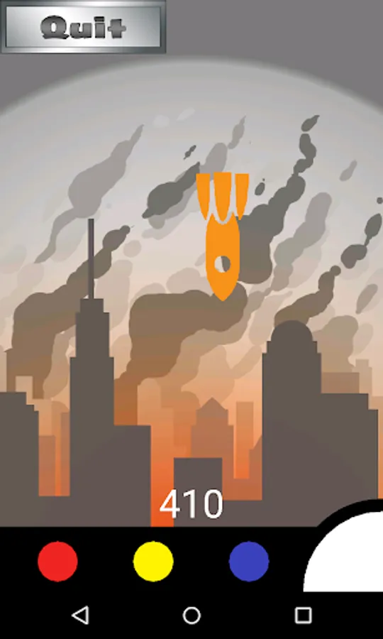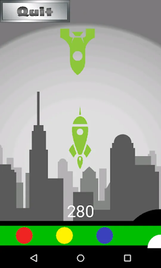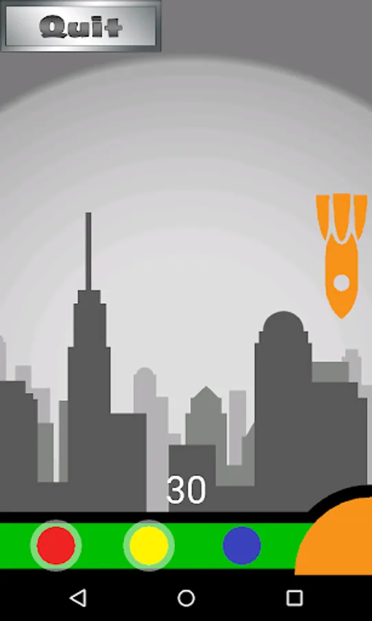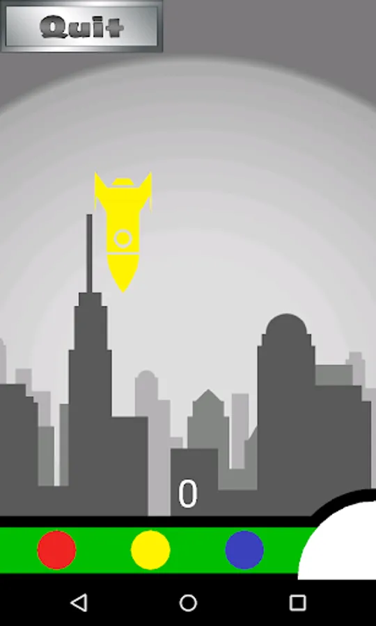 Your city is under attack! Enemy missiles will rain down onscreen, and you must build counter missiles and tap on the screen to fire upwards and destroy the incoming missile in midair. Incoming missiles will spawn in a variety of colors and the missile you build must be the correct combination of colors in order to be effective. To build a missile you combine primary colors from your color palette until you’ve created the correct color that will destroy the incoming missile (e.g. red + blue = purple). This color is determined by which game mode you select: