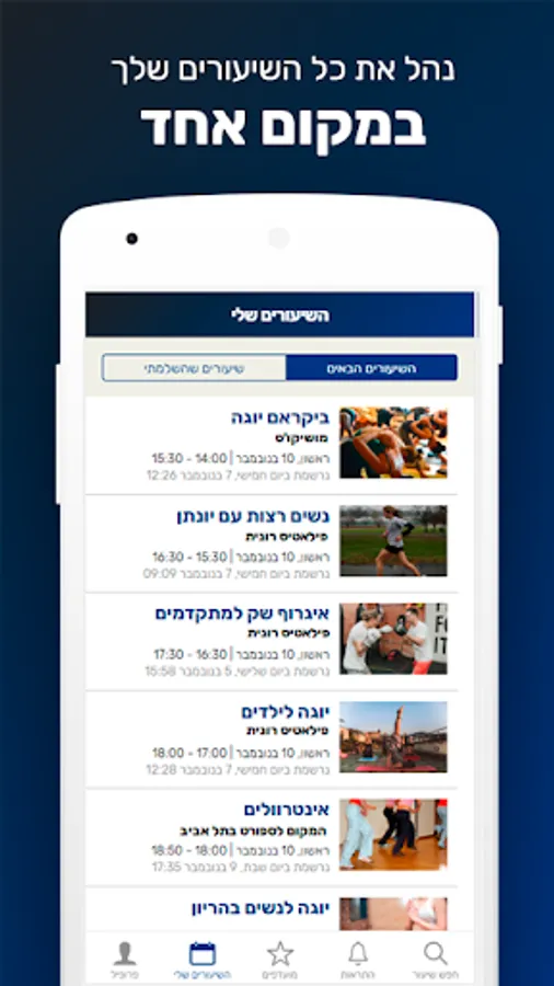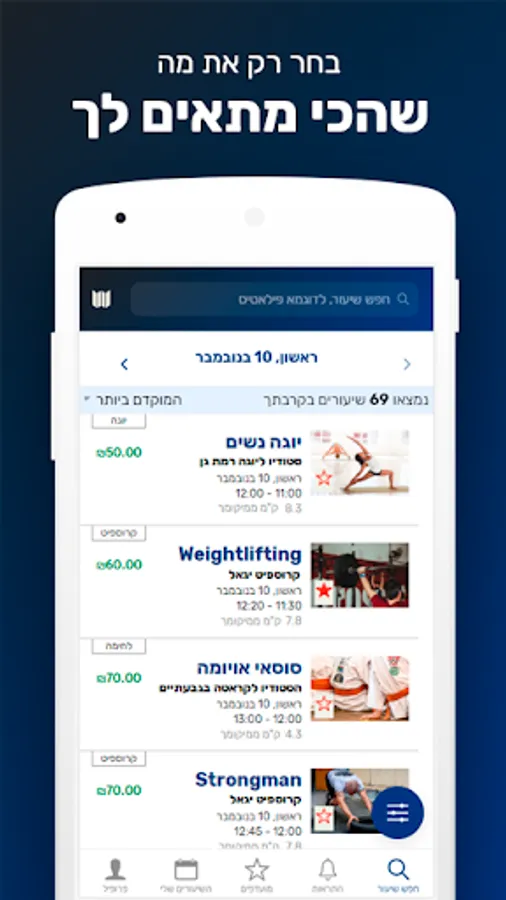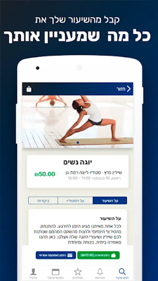 An app for sports lessons and fitness training that connects trainers with institutes and offers a wide variety of one-time paid lessons.