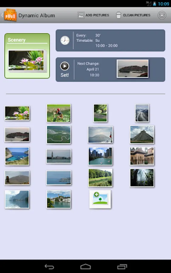 Included widget lets you quickly renew your wallpaper. You can preview the time and image for the next scheduled wallpaper change.
