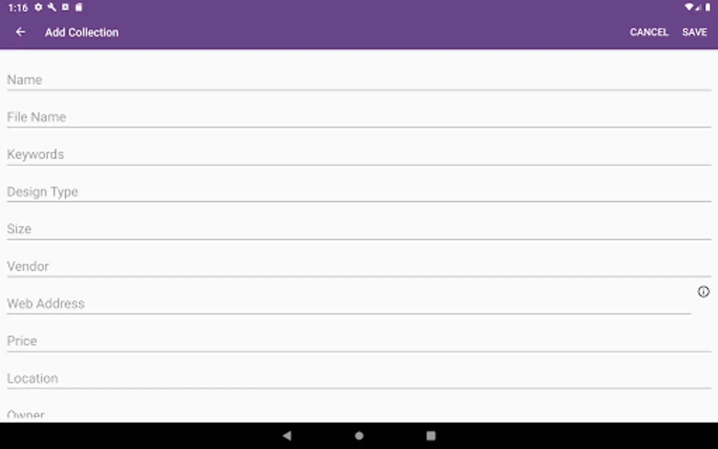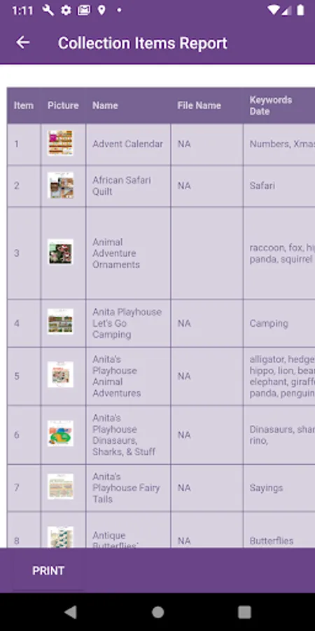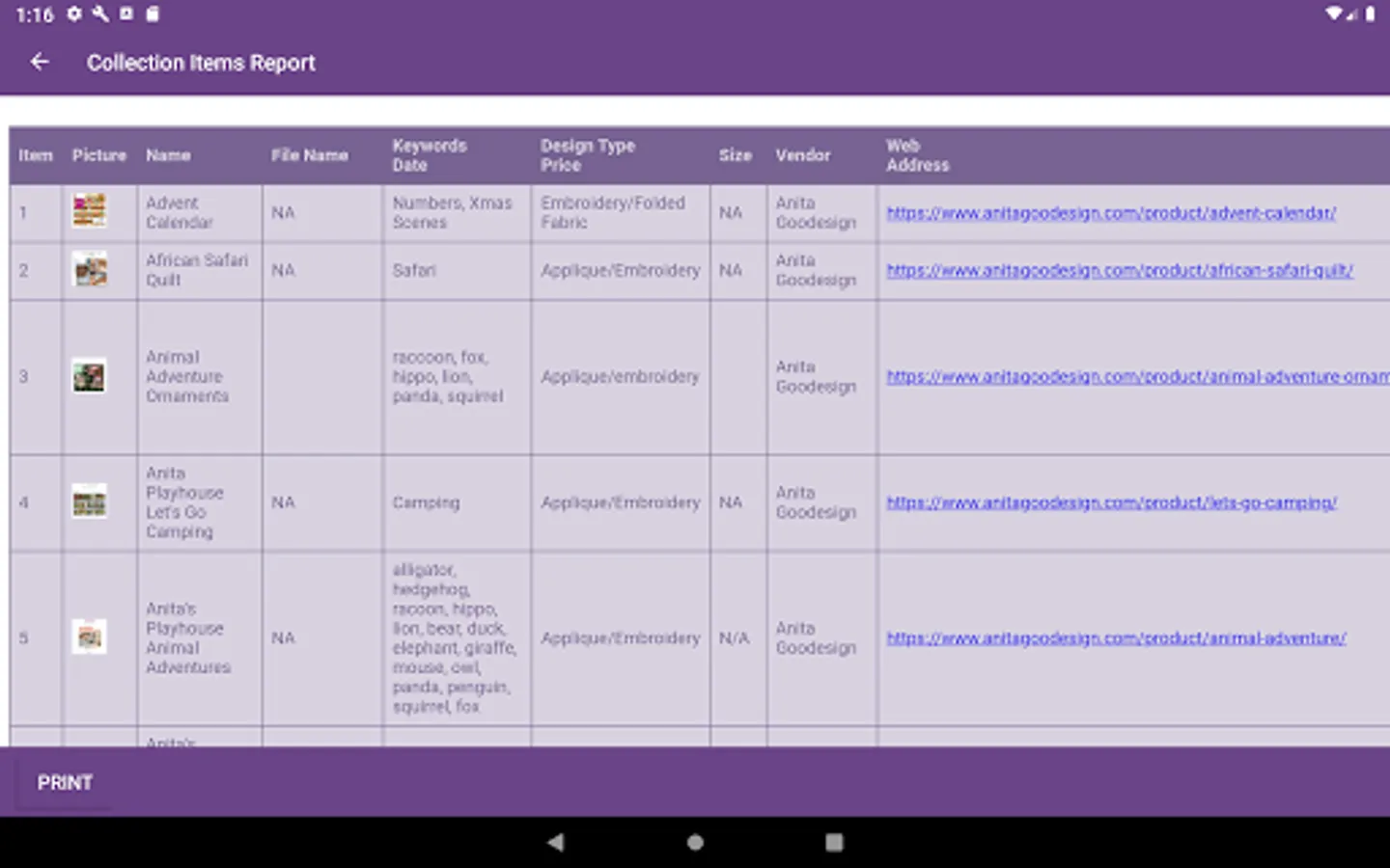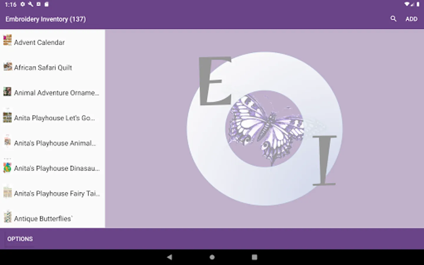 Imagine this, someone asks if you can embroider a dinosaur on a baby bib. Of course you said sure. Now you have the task of where do I purchase the embroidery design or I think I may have one. Trying to remember if you have a design or not was a problem and having to look through your computer or notebook takes a long time. For us crafters our time is precious. This app will alleviate the problem. Plus, you won't purchase the same design twice, which you know you've done in the past. With this app you can do a search for a specific design; like the dinosaur and all those designs will appear on your screen. You can open it and see a picture of how it looks. It's in your hands; you will add the data and the way you want to locate your designs