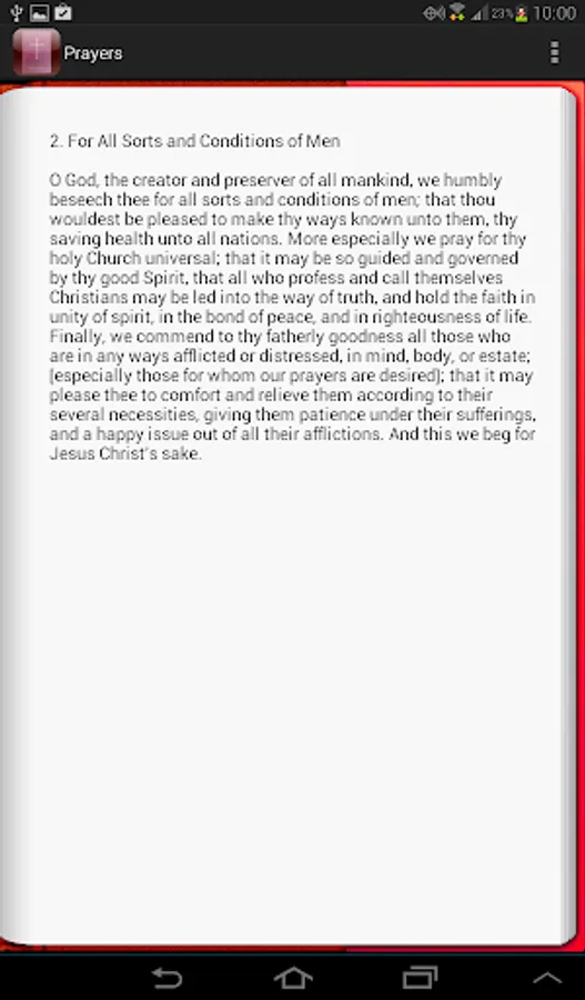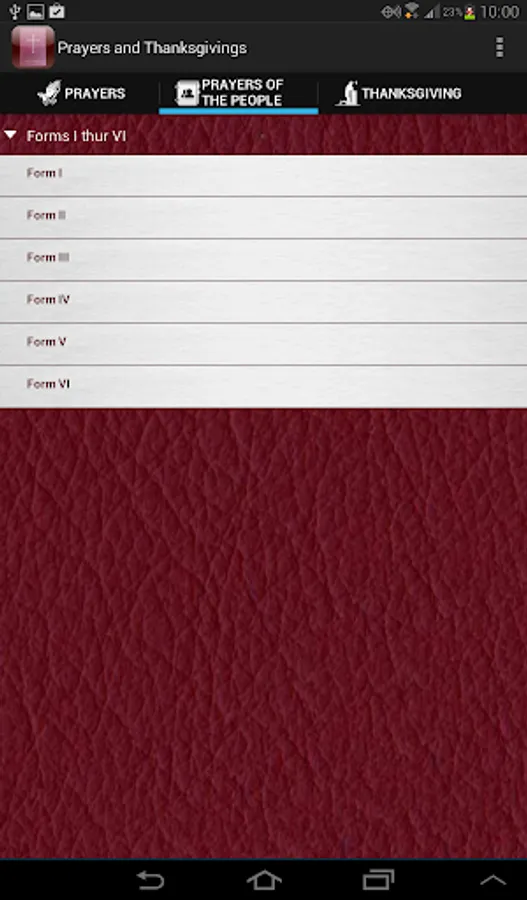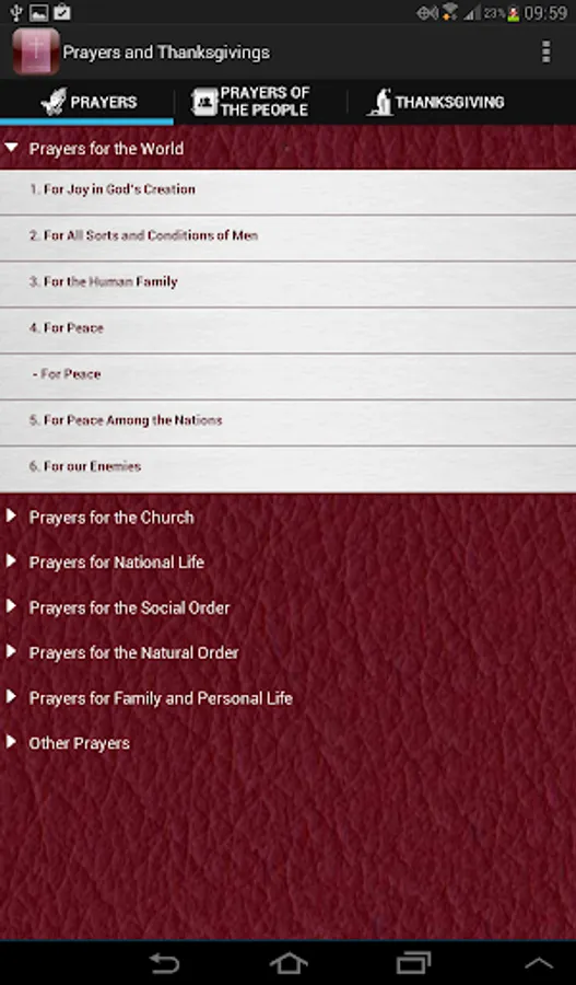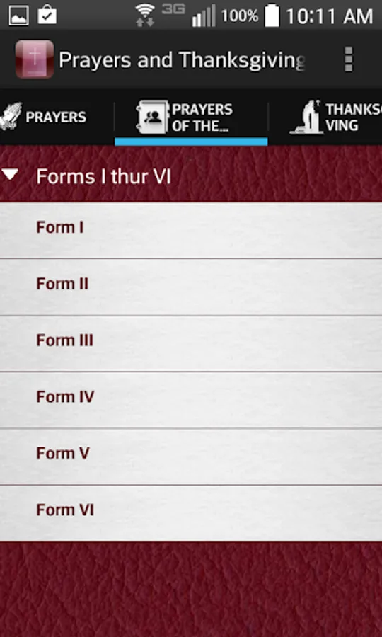 This App is based on the Prayers and Thanksgivings chapter in the 1979 Book of Common Prayer (Episcopal Church) beginning on page 809. The purpose of the App is to provide easy access to more than 120 Prayers and Thankgivings available using a simple to use interface. Also included is the Prayers of the People (Forms I through VI) normally found on page 383 of the 1979 Book of Common Prayer (Episcopal Church). I hope you and your family find this App spiritually enriching for your souls and enjoy it as much as I do with my family.