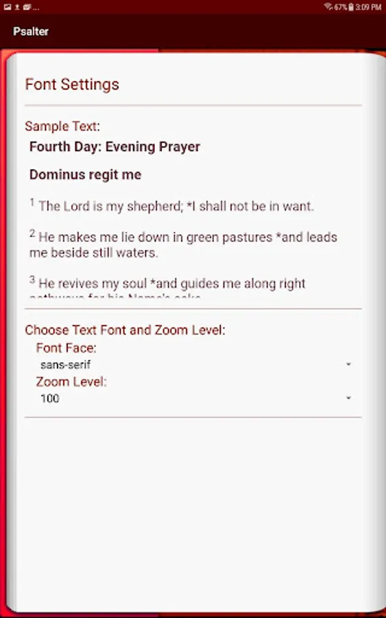This App is based on the Psalter chapter in the 1979 Book of Common Prayer (Episcopal Church) beginning on page 581. The purpose of the App is to provide easy access to 150 Psalms available using a simple to use interface. I hope you and your family find this App spiritually enriching for your souls and enjoy it as much as I do with my family.