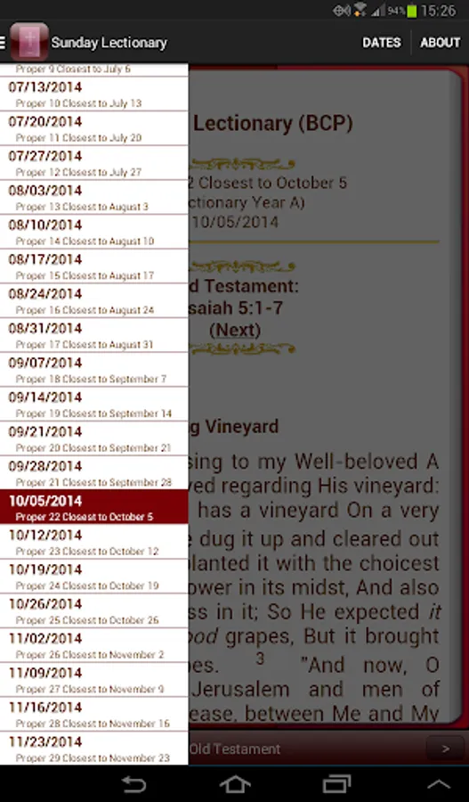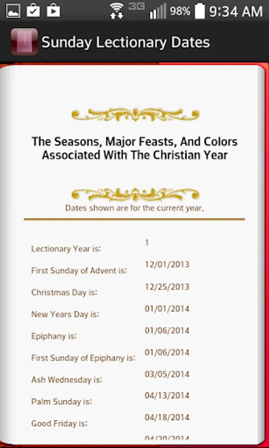 By having the readings in the app database saves the reader from having to look these scriptures up. The database and supporting algorithms also provide a perpetual yearly calendar for all Sunday readings (forever).