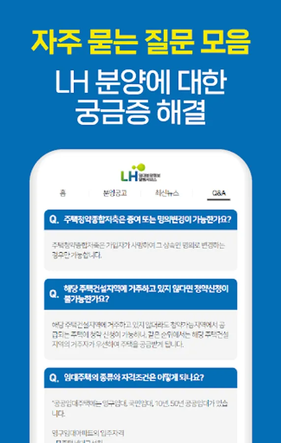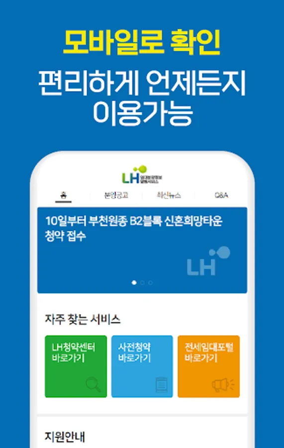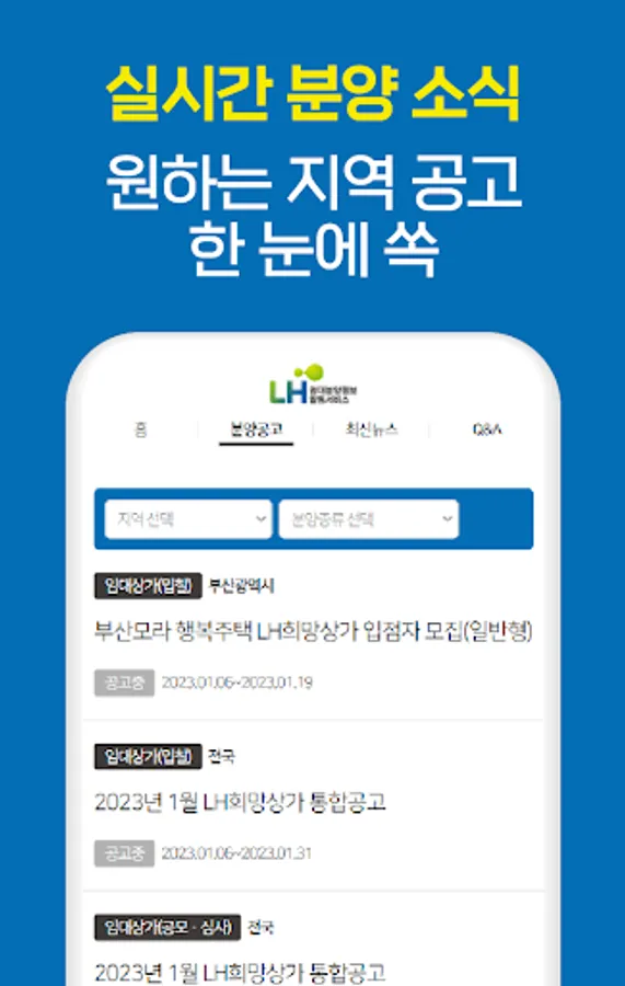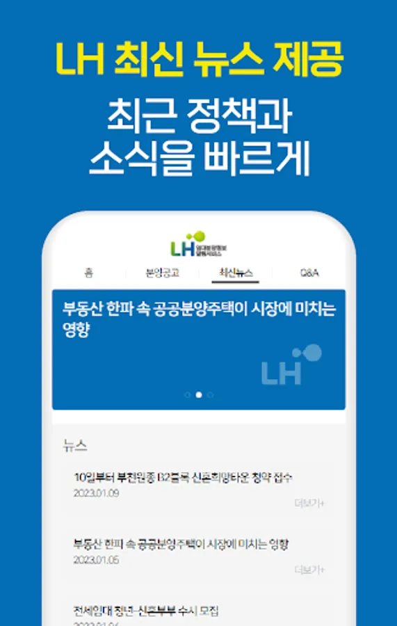 You can check the LH real-time public rental sales that you need, subscription information, and the latest real estate policy information and news.