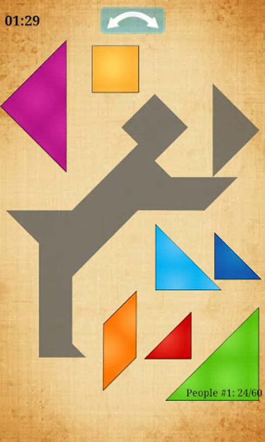 The objective is to form a specific shape using all seven pieces, which may not overlap.