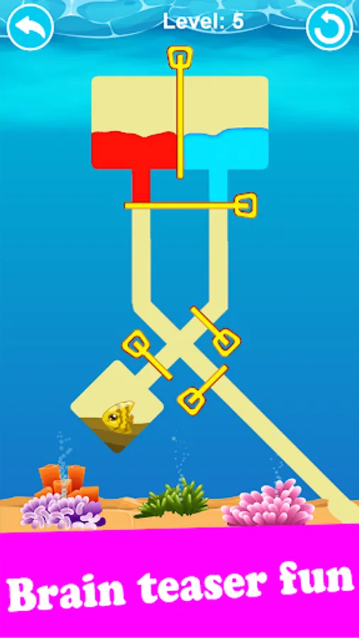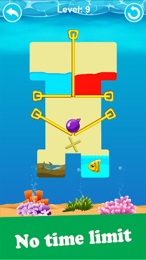 puzzle game for all ages where you must save the fish by pulling the pin. It is a free brain teaser game where you must figure out which pin to pull and in what order to pull the pin to save the fish from various obstacles like rocks, bombs, dynamites, poisonous gases and also have to save the fish from BOSS enemies like Crocodile, Shark, Octopus, Crab, and Hammer Head Shark.