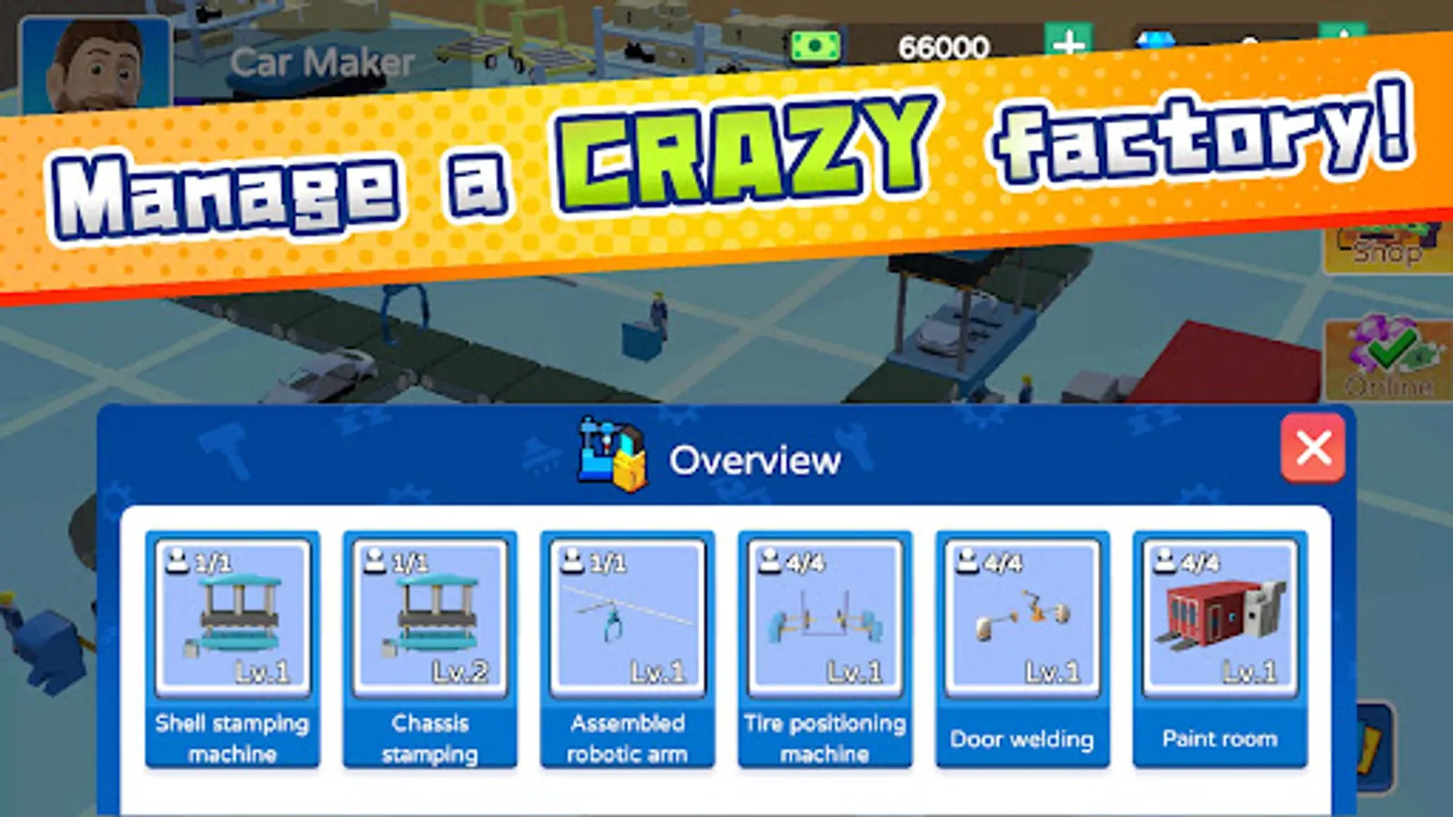 Real new energy car tycoon: In the game, you need to design drawings to manufacture cars, build an efficient car factory, each workshop is responsible for different production stages, stamping, welding, painting, assembly, just like in a real factory same in.