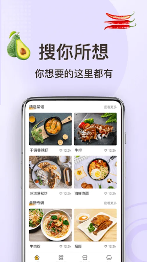 (4) Powerful classification function, you can easily find the recipe you want according to the dishes, crafts, cuisines, crowds, functions!