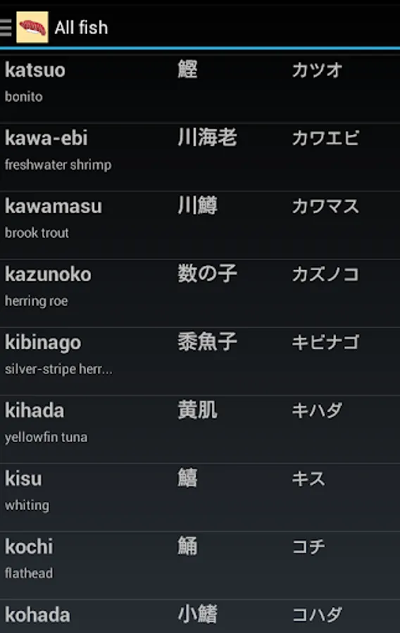 - text-to-speech lets you hear sushi terms in native Japanese (Android 4.0.3+)