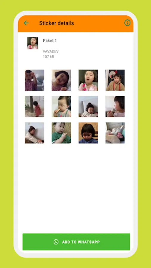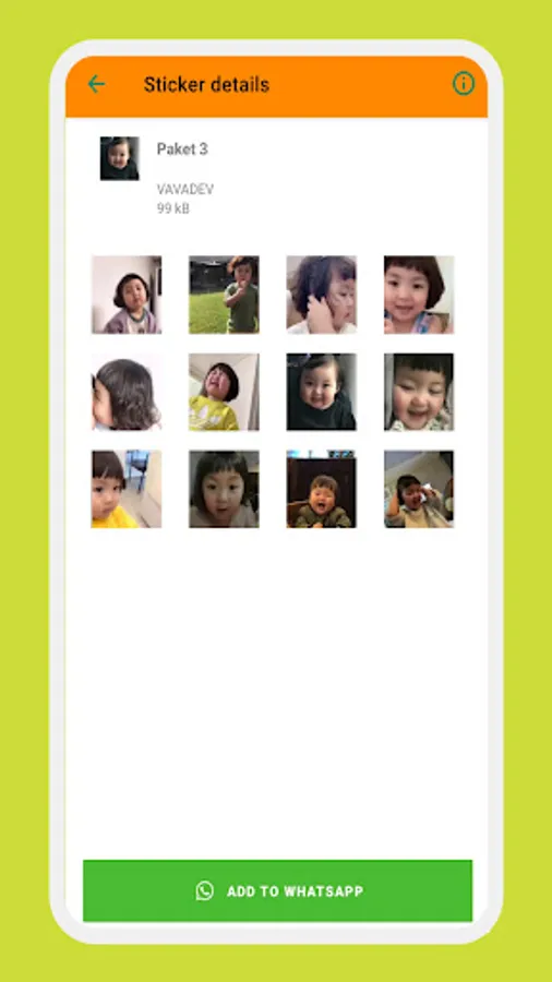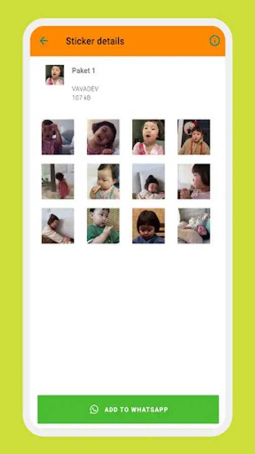 Send Corean Cute Babies Stickers - Funny Jin Miran for whatsapp. The Corean Funny Baby Stickers - Jin Miran for whatsapp contains a collection of cute and cool stickers. Now amaze your friends using the ultimate sticker pack of the Cute Baby Stickers - Funny Jin Miran. WAStickerapps sharing stickers are now available! What are you waiting for? We present the best application for you which can share sticker packs with your family & friends.