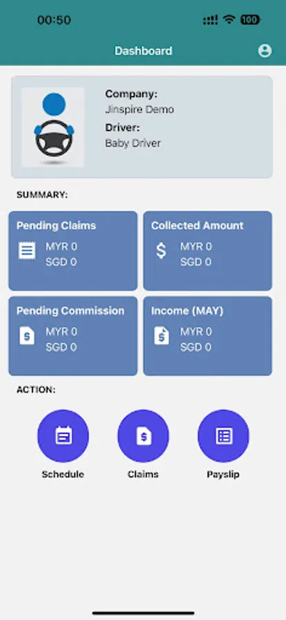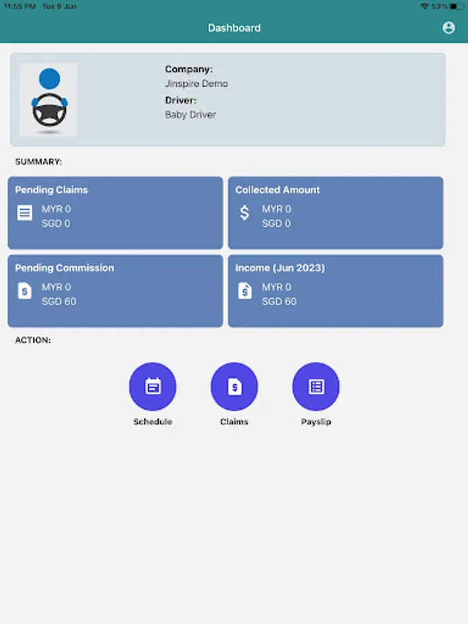 Driver can view their assigned schedule from company, and also upload claims by themselves to their company. Besides that, the App have dashboard to show their income for the month including view their payslip, and also pending commission & claims.
