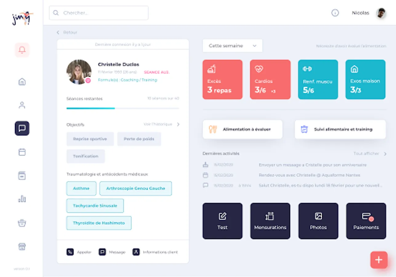 Jiny is the perfect companion for your coaching. From food to tailor-made training programs concocted by your coach, you have all the keys to achieving your goals. You are never alone! Thanks to Jiny you immediately get advice / tips. Your coach is never far from you.