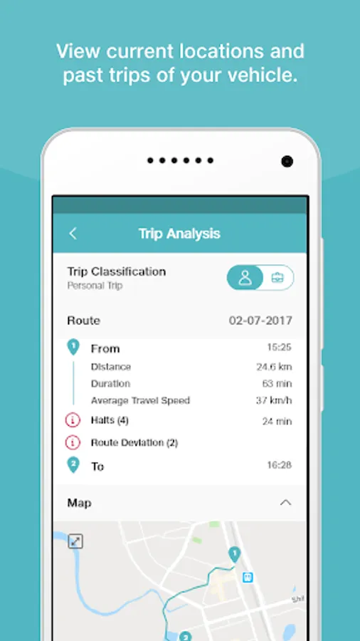 Analyse trips with key insights. Get useful insights of every trip through speed and mileage mapping of trips. Accurately track the details of every trip: map and record time, mileage, top speed, hard brakes, idle time, and fuel cost.