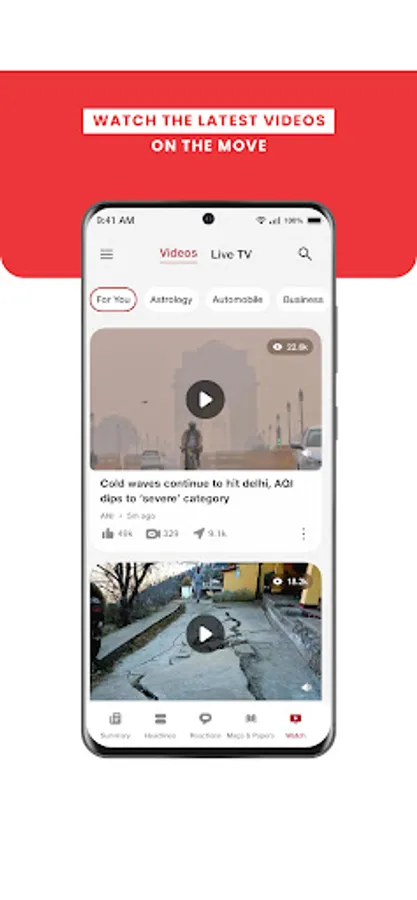 JioNews keeps you updated with a personalised feed of short news summaries. You can see the in-depth coverage about a topic through our 'News Coverage' feature, and seamlessly transition to read full articles on topics that interest you. With JioNews you can watch short and long-form video stories on the move and also get real- time news updates on your favourite Live TV channels.