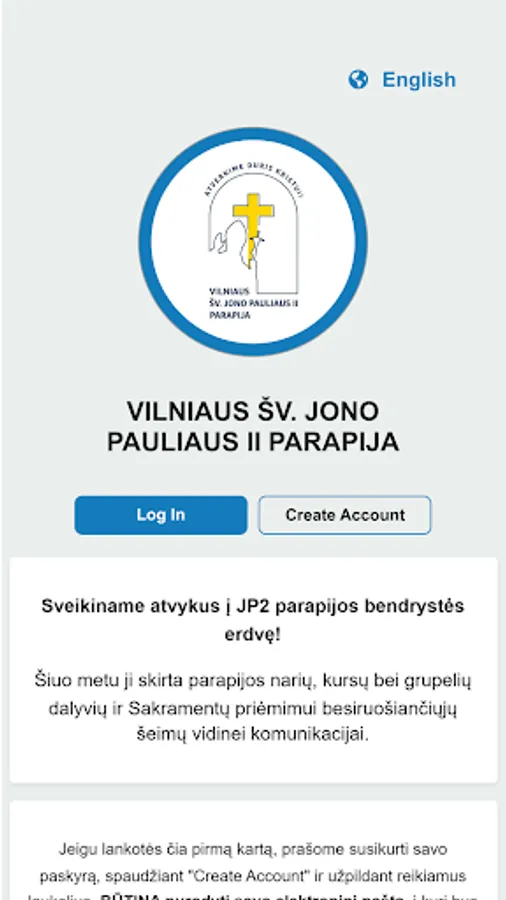 Programėlė skirta Vilniaus šv. Jono Pauliaus II parapijos (toliau - JP2 parapija) bendruomenės bendrystei ir tarpusavio komunikacijai.